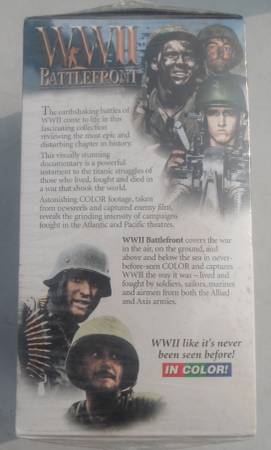 WW II BATTLE FRONT: World War II documentaries of WWII in color on five VHS tapes. Covering Air, Land, and Sea action. Box set of 5 tapes new, unopened, factory sealed.