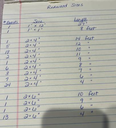 From well-maintained deck; these redwood boards are ideal for DIY projects, rustic decor, or garden builds. Great opportunity for woodworkers or up-cyclers!