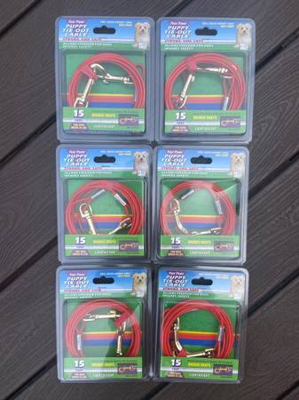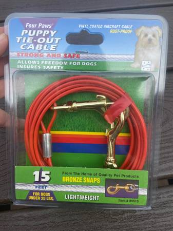 Heavy Duty Tie-Out Cables 15 feet for dogs under 25 pounds Vinyl-Coated Aircraft Cable $10 each Rust Proof Bronze Snaps