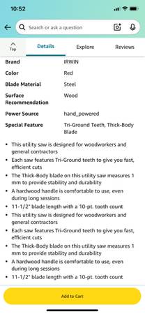 $18 Irwin Utility Toolbox Saw $20 Stanley Fatmax Carbon Steel Hand Saw