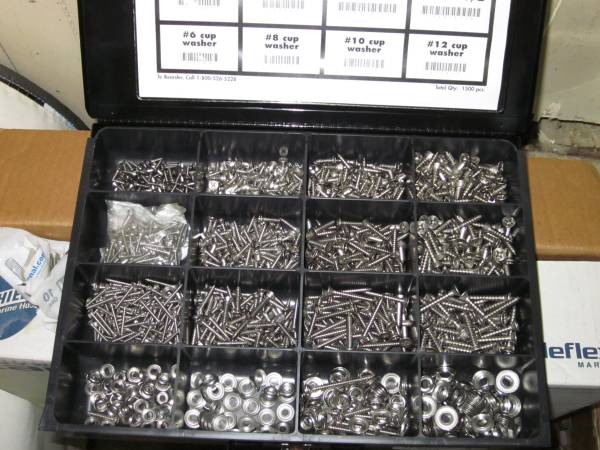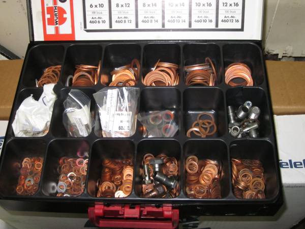 SILENT AUCTION IS IN EFFECT: Stainless fasteners, aluminium and copper sealing rings, O rings, studs, speed nuts, copper nuts and hardware, includes storage boxes. Pricing depends on selections