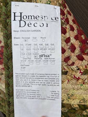$20 each chair pad $150 smaller oval table runner $180 larger rectangular table runner Homespice Decor Custom Made English Garden Color
