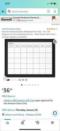 Dry erase calendars White Board Calendars LARGE White Wood Frame $25 (22" by 18") $20 for each of the smaller magnetic dry erase calendars Dry eraser $4 Markers free with purchase Expo dry erase...