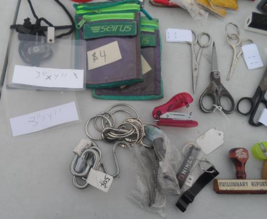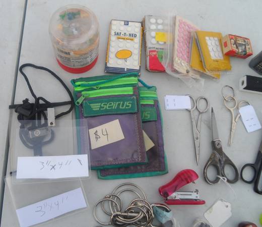 =ID BADGE HOLDERS: Clear plastic $1. Cloth with two zippered areas. $4 each.