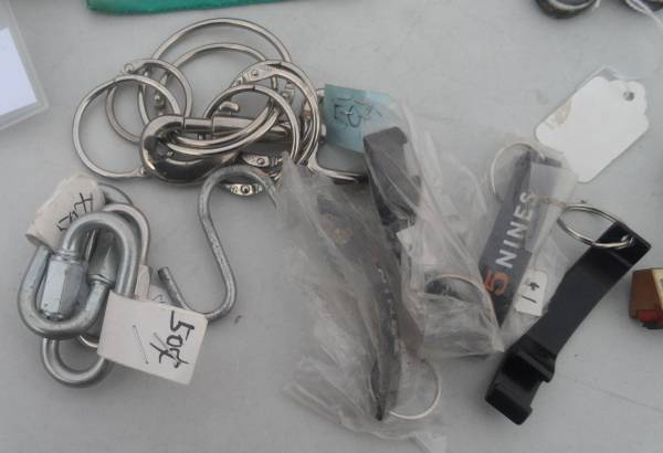 =SPLIT RINGS, PAPER RINGS, BOTTLE OPENER, ETC.: 25 CENTS TO $2.