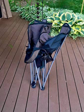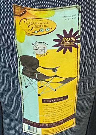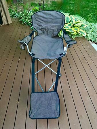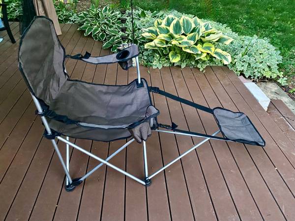 Portable 2 Position reclining folding bag lawn chair with foot rest. Adjustable Strapes.