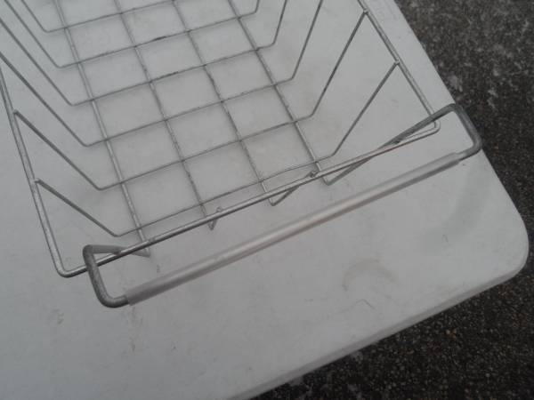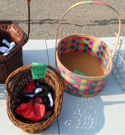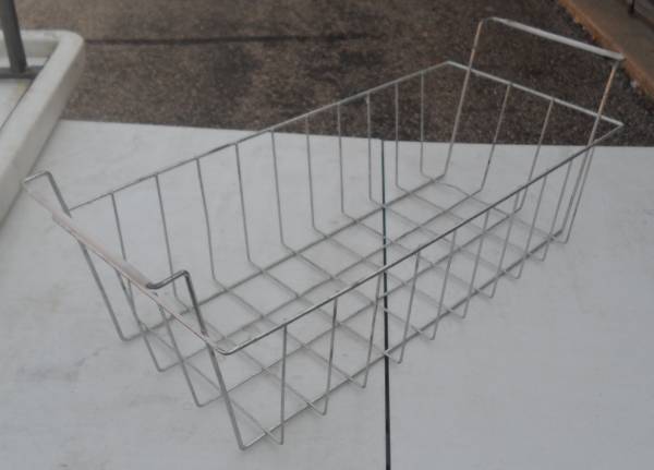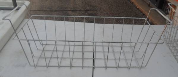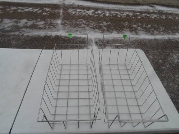 =Two 6x21x10 inch baskets with plastic covered handles (7.5” wide, 8.5 high) hole spacing on bottom 2”x2.5”. $1 each.