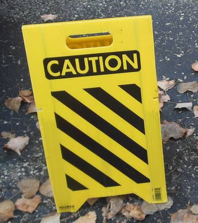 =FLOOR SIGNS: Yellow plastic CORE PLAST signs (have x6) extra weight has been added for stability when used outdoors in windy conditions.