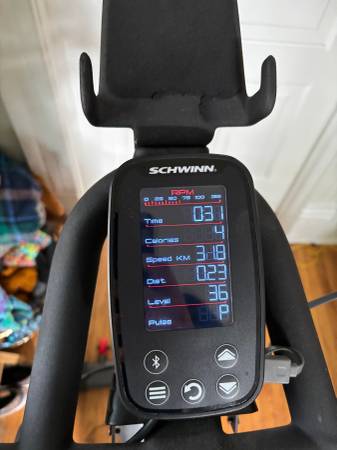 > The Schwinn IC4 Bike provides a premium, heart-pumping indoor cycling experience and features a 40 lb. flywheel with an intuitive resistance knob, 100 levels of magnetic resistance, a beautiful backlit LCD display, and easy-reach cradles for 3 lb. dumbbells. Digitally immerse yourself in a world of virtual races, exotic locales, and stunning trails from around the globe *with connectivity to popular cycling apps like JRNY, Peloton, Zwift, and more*. Keep working out with JRNY wherever you go from your phone or tablet; try the Mobile-Only Membership free for 2 months. With the IC4, you’ll escape the everyday and stay on track for a life well-lived.