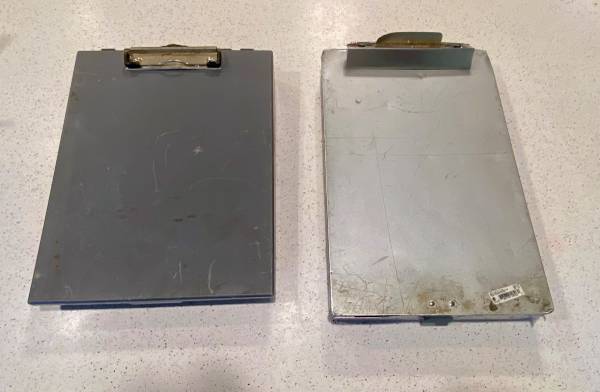1) Plastic & 1) Aluminum Portable Workorders Clipboards (2) USED.