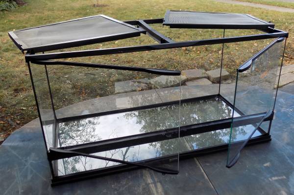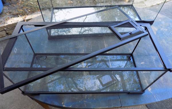 Reptile terrarium cages, one 50 gallon tank with top and front doors and one 20 gallon with top cover. The 50 gal. measures 18" x 19" x 36" while the 30 gal. tank measures 13" x 13" x 30". Both are in excellent used condition with a few minor imperfections but still have a nice newer look. The 50 gallon is $85 and the 20 gallon is $35. Or take them both for $100.