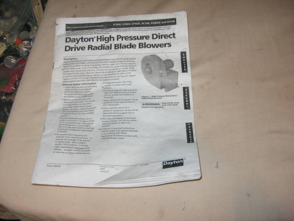 $150.00 Dayton High Pressure Direct Drive Radial Blade Blowers. Condition unknown as you can see it hasn't been put together. Selling this "AS IS". Pick up at my home in Portage, Wisconsin. CASH...