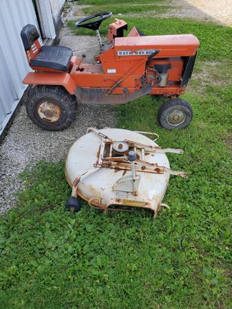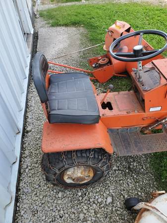 Original 1973 Ariens Manorway 800 lawn tractor with mower deck, snow blower, wheel weights and chains.