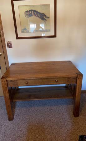 Beautiful Mission Style Solid Oak Desk purchased from Middleton Antique Mall Excellent condition all around. I have kept it protected and covered. Warm golden honey stain.