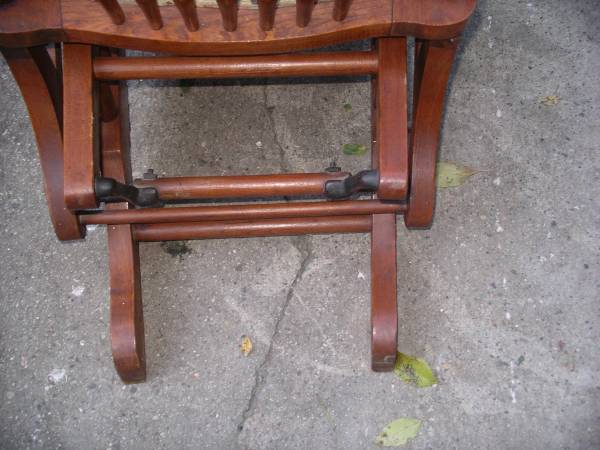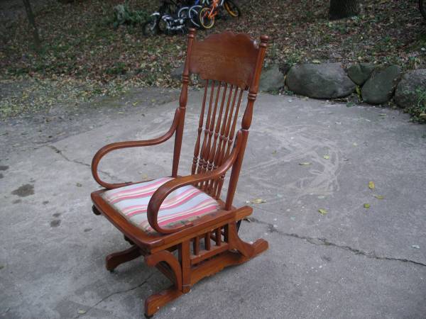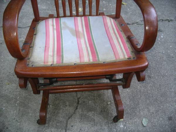 Antique Glider Rocker - glider mechanism has Pat May 29 88 cast into it - front wheels are steel Call or text (6*0*8) two*7*nine-0*four*0*seven Cash only please