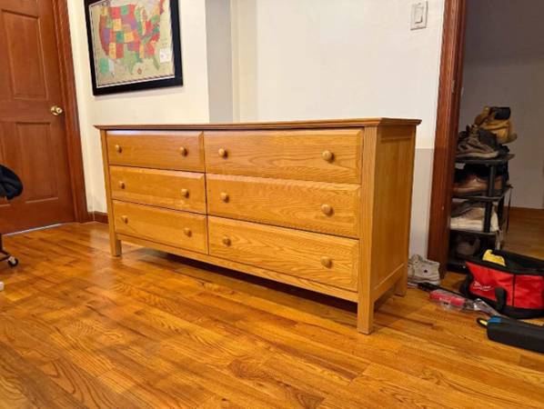 Sturdy and high quality 6 drawer dresser. Message me if you’re interested. I included the size of the drawers in the photos