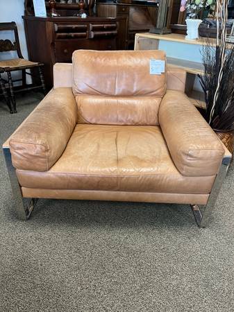 Gorgeous Mid Century Modern style italian leather armchair by Giuseppe Nicoletti. At time of posting a matching ottoman and sofa are available separately.