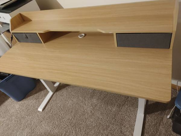 Sit to stand desk, works perfect. This desk is lightweight, easily slides if you need to move it. Great for those who work at a desk all day. Perfect condition. Cash only please, you pick up.
