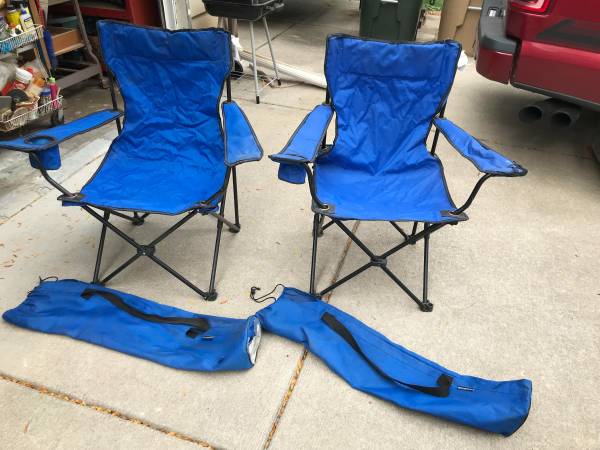 Two blue high back folding lawn / quad chairs with cup holders and carry bags for sale. Good condition. $15.00 for both. If you see this ad they're still available. Pick up Madison east side, cash...