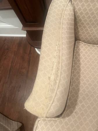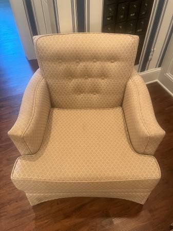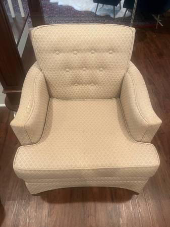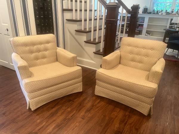 Pair of vintage chairs for sale. Color - light tan Comfortable Good condition Dimensions: 31” H 31”W 35”D