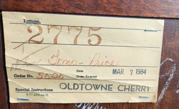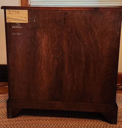 This is a vintage Statton Trutype Americana Oldtowne Cherry Dresser Chest. These were hand made by the Statton Furniture Company. It has a few minor blemishes on the surface, but is otherwise in excellent condition. It features five dovetail constructed drawers with brass bail handles and ogee carved bracket feet. It measures 30.25" high, 29.25" wide, and 11.75" deep. The top drawers are 11.5" x 9.5" and 3" deep. The lower three drawers are 25" x 9.5" and 4.25" deep. It is from a smoke free home.