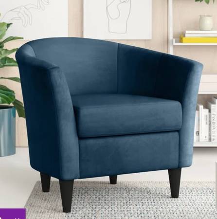 I've got four matching "Kronos Barrel Chairs" that I purchased through Wayfair in approx 2021. Current price on these chairs is just over $240 each, but I'm asking $40 each for them (for reasons posted below the description of the chairs). To see what these chairs look like, search Andover Mills Kronos Upholstered Barrel Chair, and the color Chantel Parisian Performance Velvet.