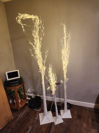 Brand new 6 foot/5 foot/3 foot Outdoor/indoor Come with bases and stakes Has different light modes Can send a video of them working if interested
