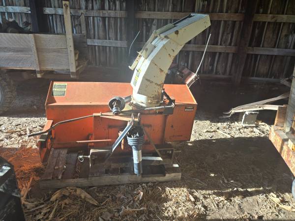 Kubota snowblower, 5 foot wide for 3 point hitch. I got this in a package and have no need for it. I have not used it but lubricated all chains and moving parts and can turn by hand easily. Standard 540 pto. Seems solid with no issues. Asking $950 or may trade for tractor or truck. You can call, text, or email. If calling please leave message as I can't always answer.