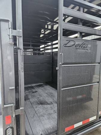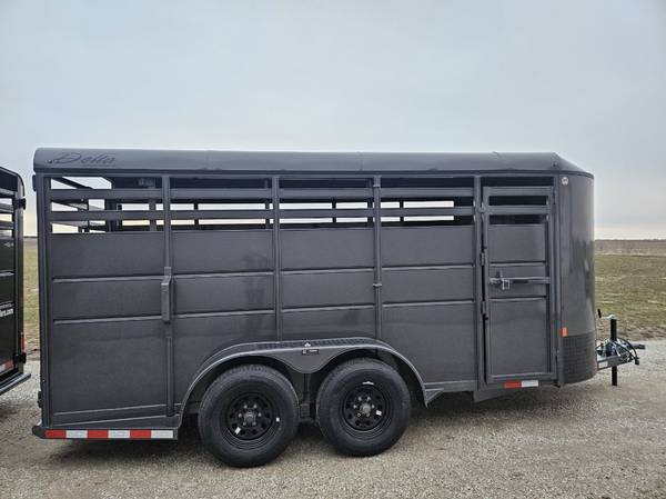 New 2025 delta 16ft cattle trailer has two 5200#axles with brakes on both, center divider gate. Come take a look, located in the beaver dam area