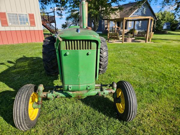 1963 John Deere 3010 Utility tractor. Runs well after rebuilding the carburetor and drives good. It has some hydraulic leaks and the PTO doesn't work. Rear Tires are 16.9 x 24 and have 80% tread. The front tires are good, but weather checked. The tractor would work fine to pull wagons or plow snow with a blade. The 3-point works fine.