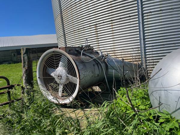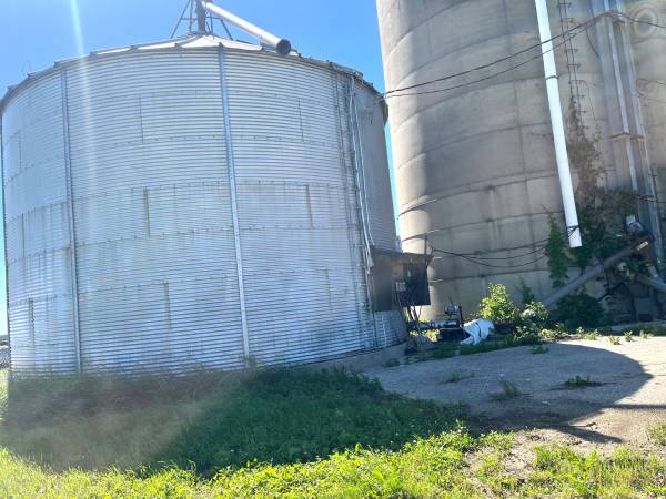2000 bu /hr Hutchinson bucket elevator ,85' with 10 hp motor. Several related augers and 30 ' drying bin with DMI stirrator , Farm Fans 10-13 drying burner , Sweep auger unload , 7.5 hp centrifugal aireation fan on silo. Roof blew off silo and want to take it all apart.