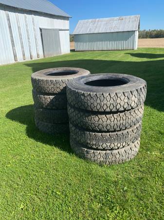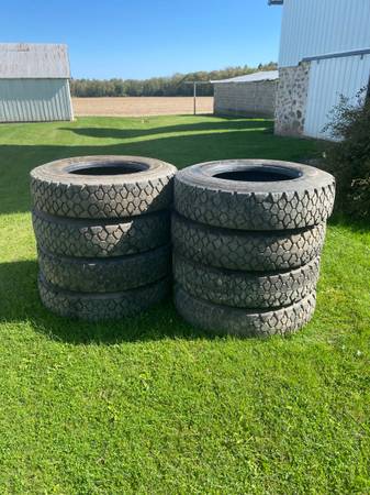 8 Goodyear 10R22.5 drive tires, good tread, not on rims 2 Goodyear 10R22.5 steer tires, good tread, on rims $1000.00 for all, best offer or will separate