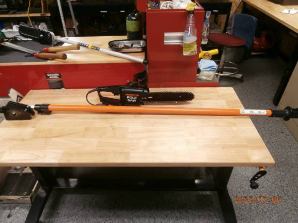 Chorded 110V pole saw,extends to around 10ft. saw detachable and can be used as a 12in chain saw, has a std. sharp chain, cash, serious inquiries, calls or texts only( leave message and I will respond) I can meet with in a 10 mi range of Cambridge in a safe place if U wish. Thanks.