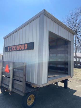 Three-year-old, three sided building, full floor on skids. Building is an excellent shape and was used for Firewood. Inside dimensions are 9 x 9 x 6.5. Will hold 4 cord of firewood. All walls are lined by 2”x 10” planking. Could be used for multiple different applications.