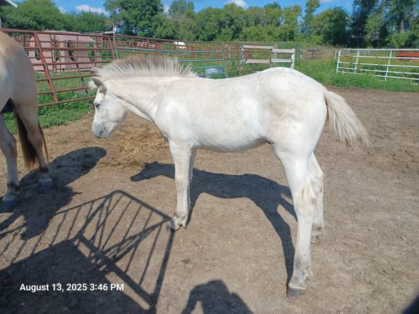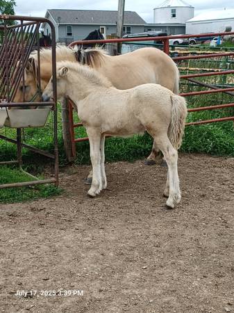 Ravens Nest Oscar is a white dun colt with great body and super legs. He is already weaned and ready to go. Very friendly and calm. Is a stallion prospect or will be a fantastic gelding. Drafty type fjord. $5500