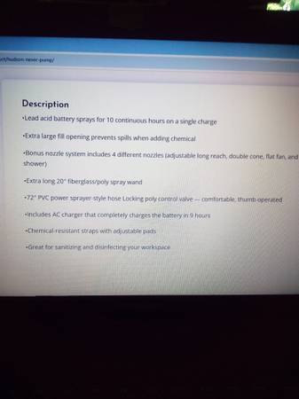 Battery powered sprayer. Read pics for info . Just put in a brand new high end battery.