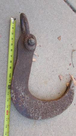 Antique logging hook or stone quarry hook. Hand forged iron hook. Heavy - 3/4" thick. Several other shapes and sizes available.