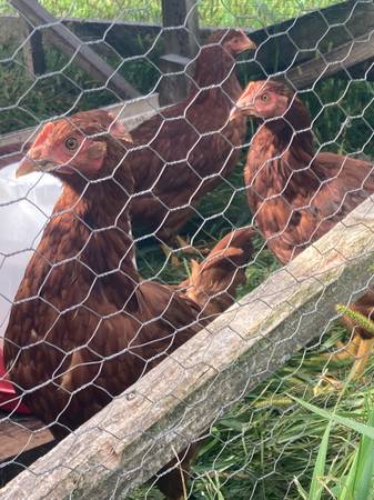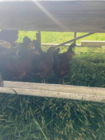 Organically raised, pastured Rhode Island Red pullets. 12 weeks old. $25 cash only. 10 available.