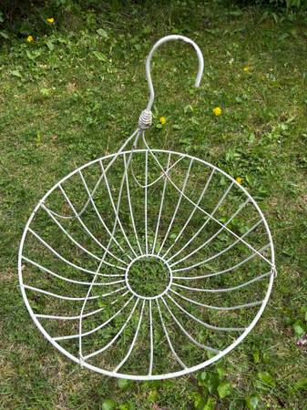 Black wrought iron 22” x 12”. $15 White wire basket 20” x 9”. $5 All vintage Cash only