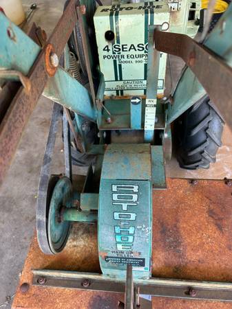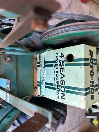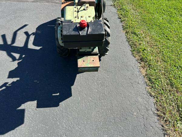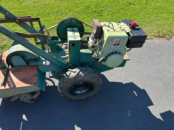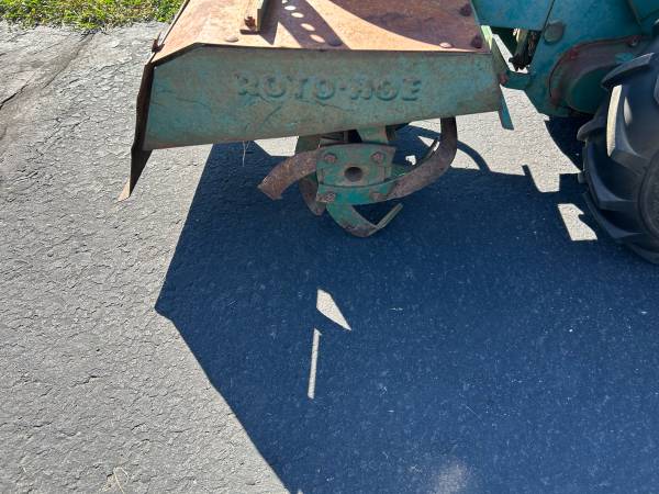 Used vintage tiller I no longer use. Carb has been cleaned and new gaskets, new fuel line and fuel tank cleaned. Tires hold air. Missing the back mounting plate for the air cleaner.