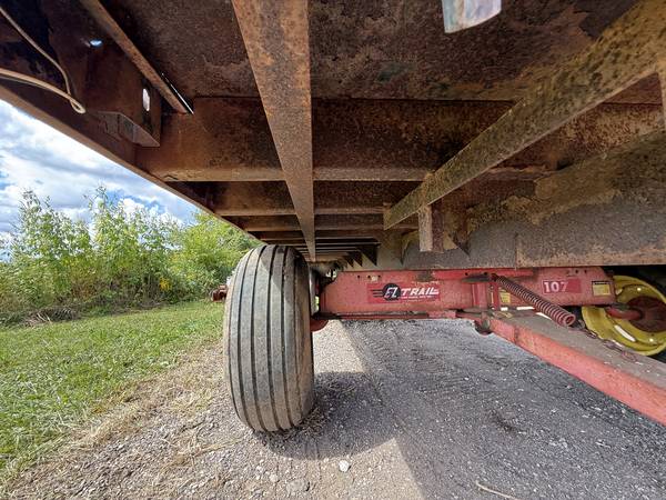 94" wide by 20' long steel frame and steel floor. Has a cutout in the floor from a shingle conveyor that was mounted on the bed. Running gear is not included