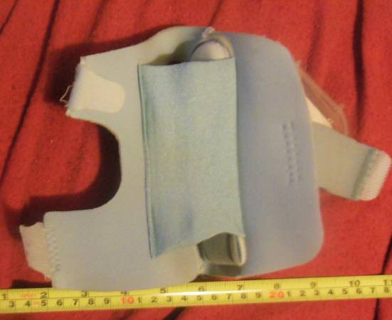 =WRIST SUPPORT: A 3M Futuro For Her Brand wrist support. Has a hard support so wrist is stabilized and will not bend. Elastic and Velcro fit adjustable for wrists up to 7.5”. Light blue in color. Excellent condition. Will Sell For $2.