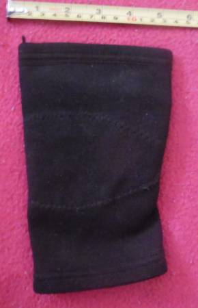=ELBOW SUPPORT: Elasto-Preene by Tru-Fit. A black nylon sleeve with rubber and neoprene for compression and support. Fit.s SM/MD. Can be used for arms and smaller legs. Size: 5” top, 4” bottom, 7” length. New, never used. Will Sell For $2.