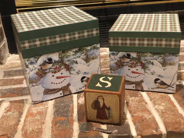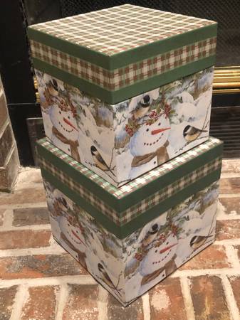 $5 for set - Snowman nesting boxes 7" and 8 1/2"