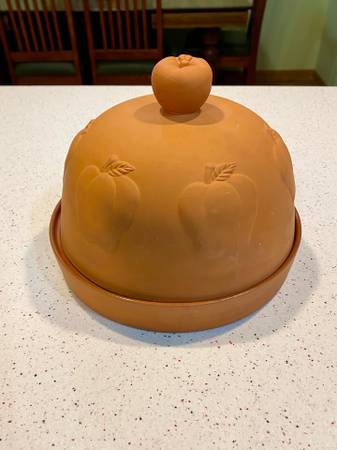 Glazed Clay Pie/Apple Baking Dish By PIC 7.5" with Lid, Nice / Used!