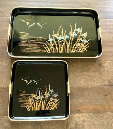 I am downsizing my things and selling these beautiful serving trays from Japan. *2 Serving trays made by black lacquer *Made in Japan *Pre-owned but only used a few times; Great condition with tiny...