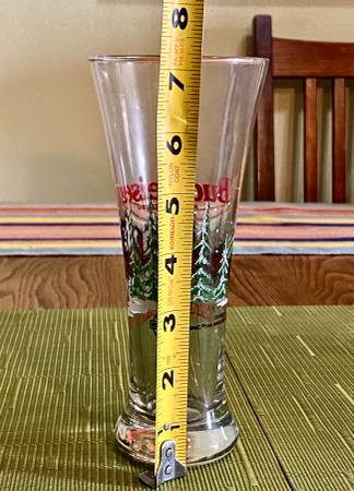 Set of (6) Budweiser Clydesdale Slim Beer Glasses Vintage Christmas 1989