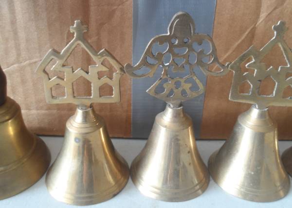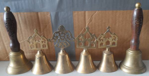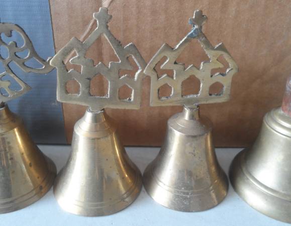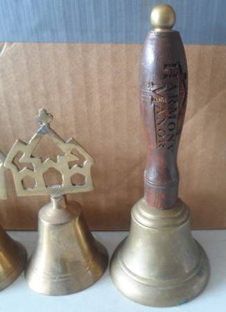 =2” X 4.25” Small brass bells. Each with a different tone. Have 4. $2 each.