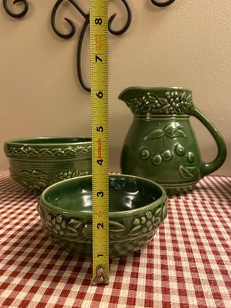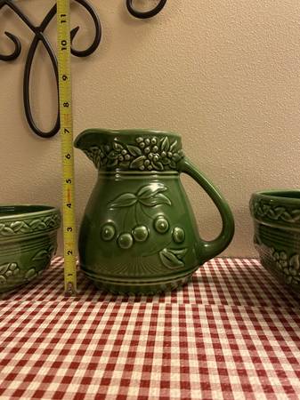 Vintage Tender Heart Treasures Bowl and Pitcher Set Grapes and Cherries Design Year 2000 MINT Condition - Never Used Freezer Microwave Oven Dishwasher Safe Beautiful Green Color Large Bowl $35...