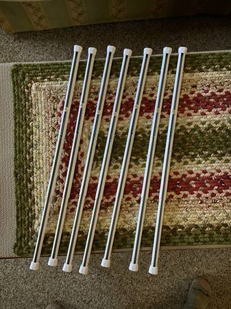 $15 for all 7 These are tension rods NEW never used These can expand from 14.5" - 26" Long Holds up to 8 pounds
